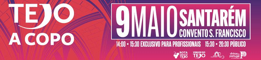 Habitualmente em março, o Tejo a Copo avança no calendário para o mês de maio, trazendo para a prova uma mostra mais expressiva de novas colheitas de brancos e rosés da colheita que lhe antecede, prontos a beber nos dias quentes de primavera e verão. Assim se espera que possa acontecer no sábado, dia 09, entre as 15h30 e as 20h30, no emblemático e carismático Convento de São Francisco, em Santarém. Entre as 14h00 e as 15h30 o Tejo a Copo abre portas, em exclusivo, para profissionais, promovendo um acompanhamento mais personalizado. A entrada é gratuita, mas quem quiser provar tem mesmo de adquirir o copo oficial do evento, por €10,00.